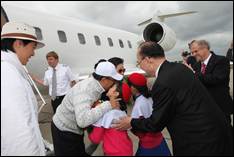 At 10: 45am True Parents and the True Family landed at Berlin Schönefeld to be greeted on the tarmac by European and German leaders and two of the Little Angels who presented flowers to them. As they drove away 36 Little Angels greeted them, waving Korean and German flags. Dr. Bo Hi Park had helped us to prepare an uplifting welcome which brought big smiles to their faces.