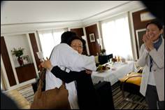 True Parents stayed in the historic Adlon Hotel, right beside the iconic Brandenburg Gate, the symbol of German reunification and the end of the Cold War. When we rode up in the elevator to the fifth floor, tears of joy came to our eyes when we saw True Parents. After twelve years of struggle against the Schengen ban finally our True Parents are back in Berlin!
