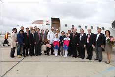 At 10: 45am True Parents and the True Family landed at Berlin Schönefeld to be greeted on the tarmac by European and German leaders and two of the Little Angels who presented flowers to them. As they drove away 36 Little Angels greeted them, waving Korean and German flags. Dr. Bo Hi Park had helped us to prepare an uplifting welcome which brought big smiles to their faces.