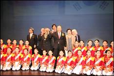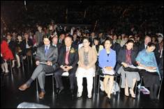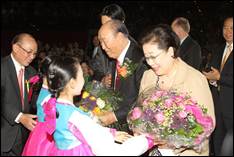 Late that afternoon President Song received the confirmation that True Parents would join the performance of the Little Angels scheduled at the Berlin Tempodrom later that evening. True Parents were greeted by the Ambassador of Korea and by Alfred Moisiu, the former Albanian President who spoke at the launch of Father’s autobiography in Korea. The Hall was completely full. More than three thousand people had filled every seat. Big screens were installed, so that everybody was able to see the wonderful performance of the Little Angels.