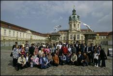 Our next stop was at the beautiful Charlottenburg Castle built in the 16th and 17th centuries. True Parents like nature and so we went to the beautiful park behind the castle. It was a touching moment when Hyung Jin Nim picked some flowers for his father. True Mother was very interested in the castle as she looked at a guide book which showed the magnificent interior.